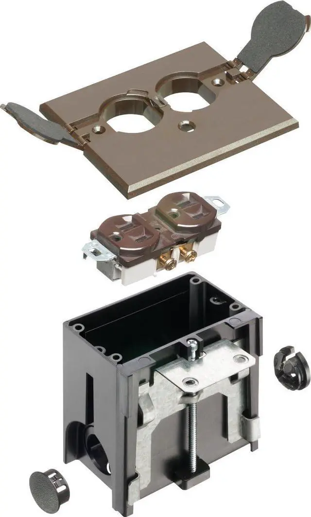 1-Gang Brown Adjustable Floor Box Kit with Outlet and Flip Plate for Installed Floors