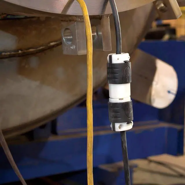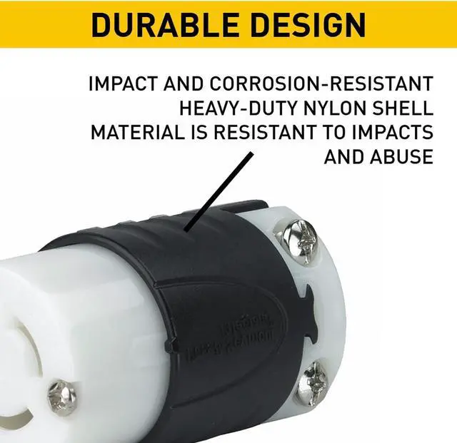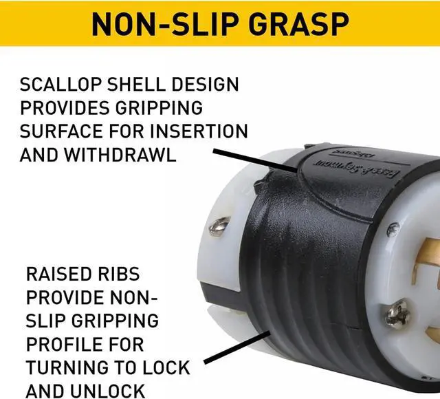 Industrial-strength, brass alloy plug blades and connector contacts resist heat rise, provide excellent conductivity