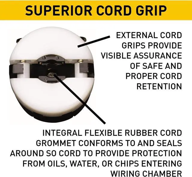 Double dovetail design provides superior protection against cord pull-out forces