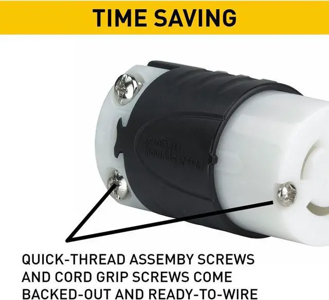 Quick-thread assembly screws and cord-grip screws come backed-out, ready-to-wire