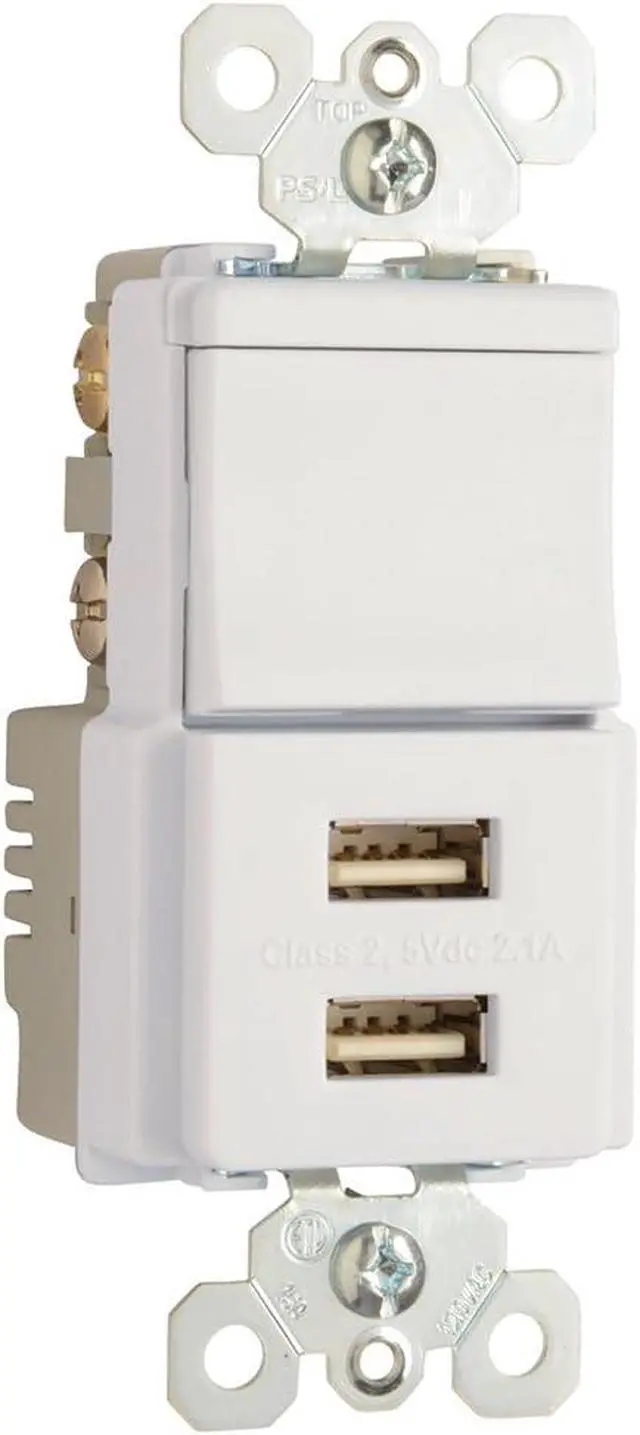 Quality Materials - This light switch with USB combo includes two 5-volt DC USB ports that work with USB 2.0 & 3.0 compatible devices for 2.1A total USB charging capability shared between both ports.