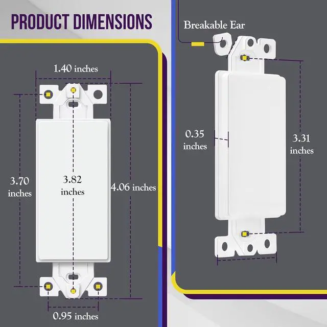 This decorator blank insert is designed for easy DIY installations. Simply screw the adapter into place at the top and bottom of the wall box, and then install your decorator wall plate over the adapter. For the best fit and color match, use with ENERLITES wall plates (sold separately). Some recommended models include 8831-W, 8831M-W, 8831O-W, SI8831-W, or SI8831M-W.