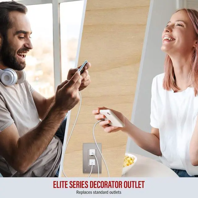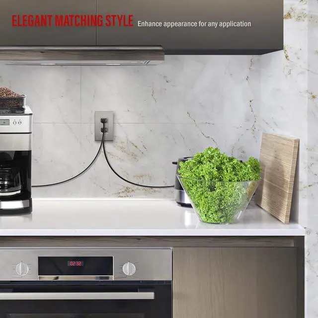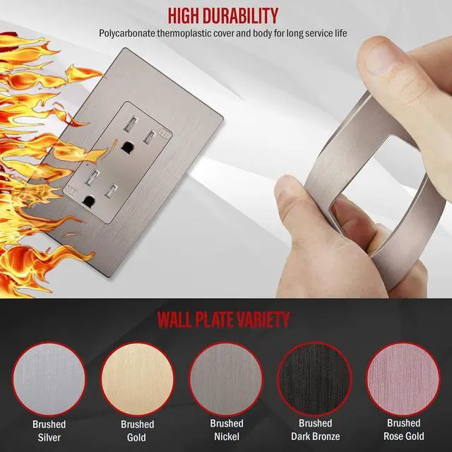 Outlet face has a smooth and matte metallic finish; elevate elegance in your space with matching brushed textured wall plate, included
