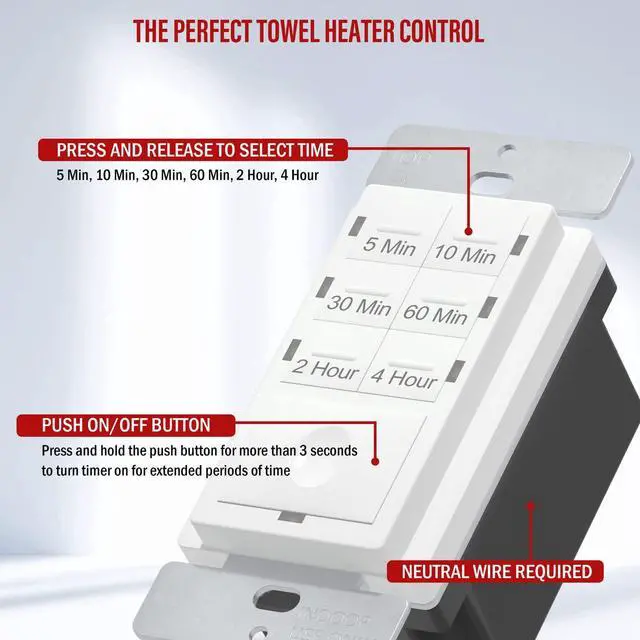 BEDROOM FAN TIMER SWITCH Replaces wall switch or spring wound timer, NEUTRAL WIRE REQUIRED