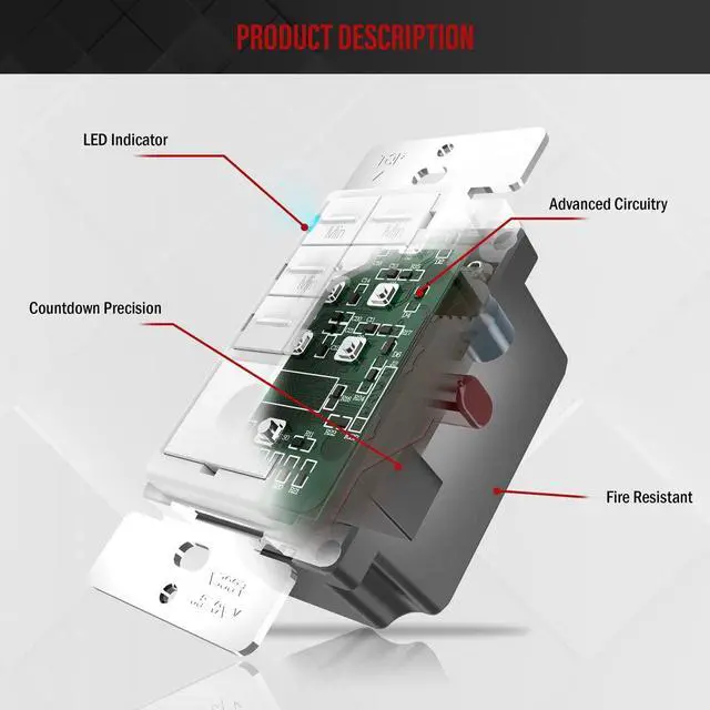 COUNTDOWN TIMER SWITCH controls the ON/OFF operation of lights, fans, air conditioner and heaters according to the countdown time set