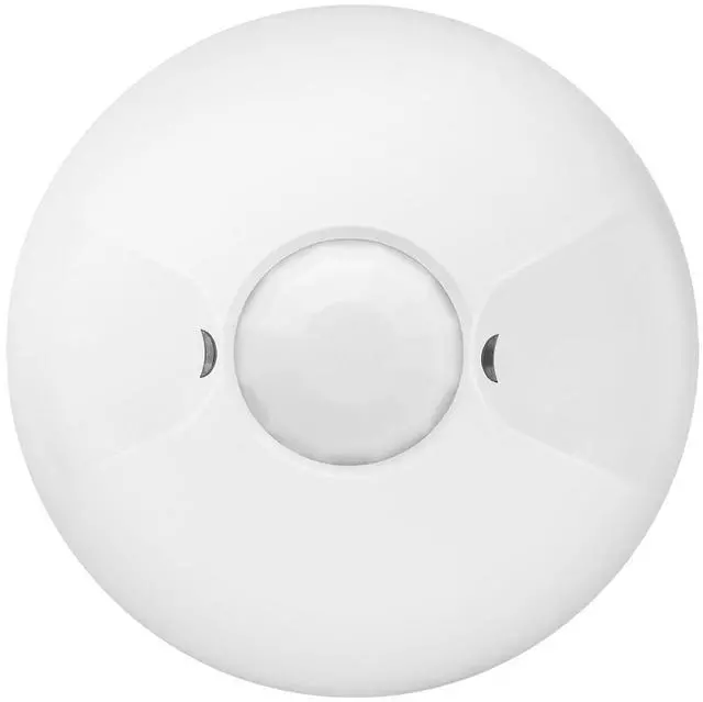 Ceiling mounted sensor/ passive infrared sensor detects full 360° degree multi level field of view. Ceiling sensor controls incandescent, CFL, and LED lighting