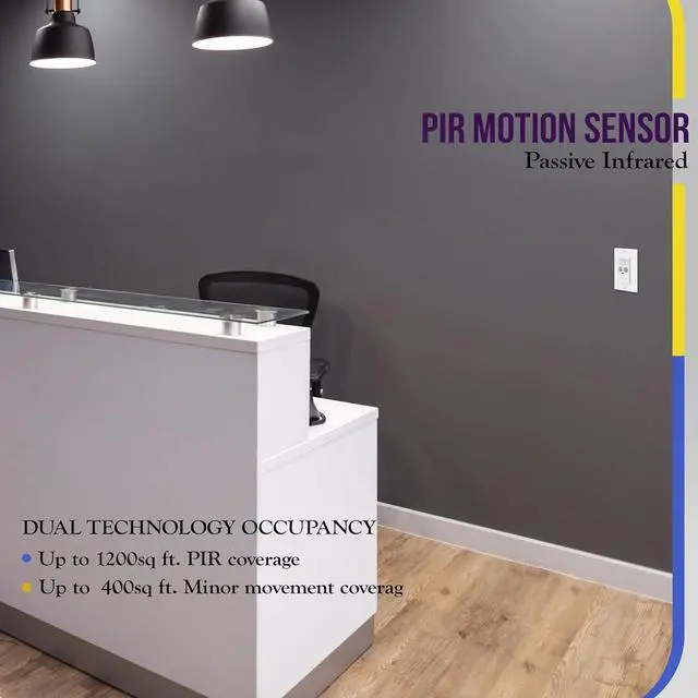 Dual technology motion light switch combines passive infrared (PIR) and ultrasonic sensors in one sensor switch for enhanced accuracy and to detect fine motion, such as typing, reading, etc