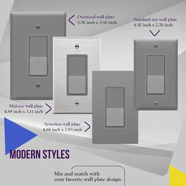 Comes with ENERLITES 8831-GY gray wall plates for the best fit and color match