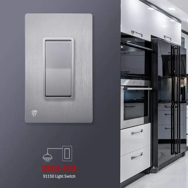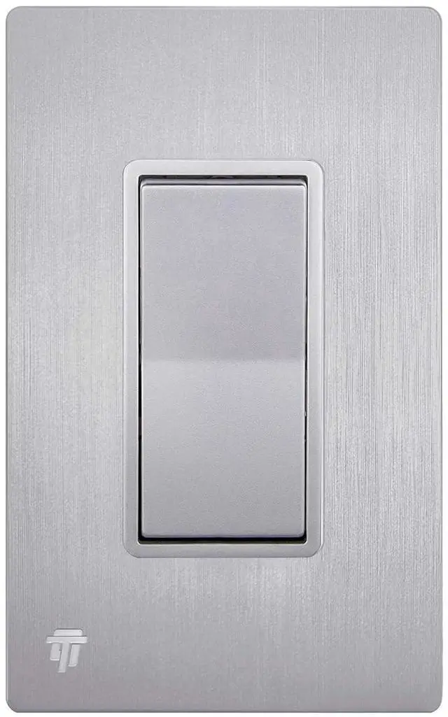 Silver color; device dimensions: 2.76 x 1.40 x 1.07; 15A, 120-277VAC, single pole only; break-off plaster ears; grounding screw; wiring instructions included; 1-year warranty; UL Listed