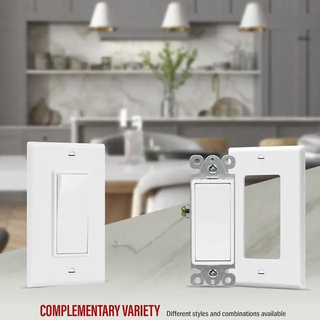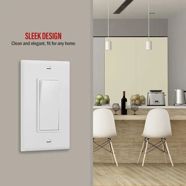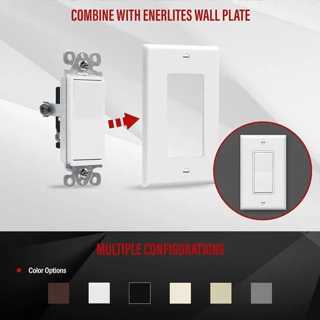 Design: sleek decorator style light switch features smooth paddle action for reduced clicking. Stylish finish matches perfectly with included Enerlites decorator wall plates
