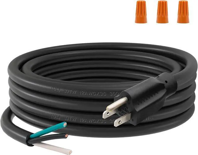 • OPEN-END CONNECTION: 12/3 replacement power cord with a NEMA 5-15P plug on one end and a screw terminal open end for direct wiring and custom electrical connections
