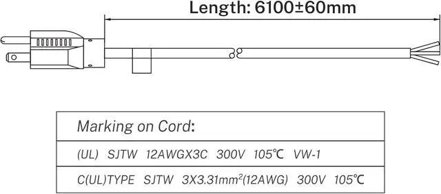 • UL LISTED & GROUNDED: UL Listed power cord with a three-wire grounded design for proper electrical connection
