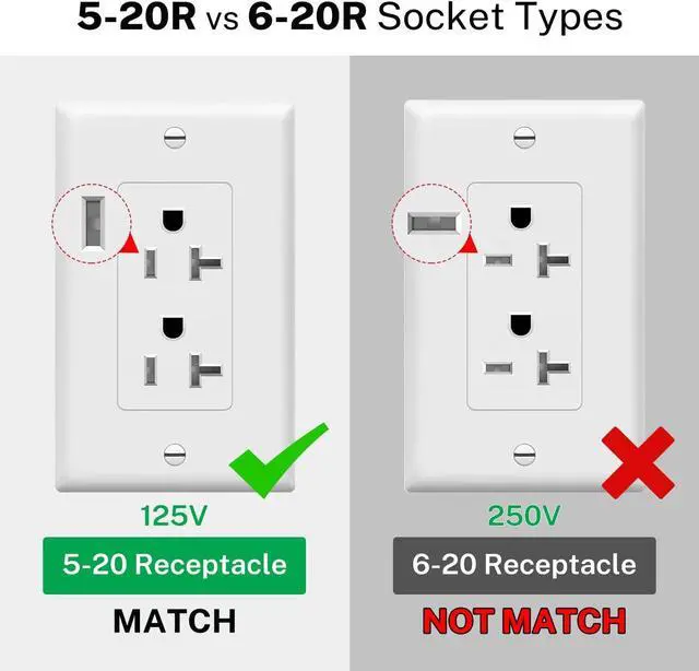 125V, 20A Check Your Plug Type Before Purchase Designed for NEMA 5-20P to 5-20R connections. Not compatible with NEMA 6-20 (250V) outlets.