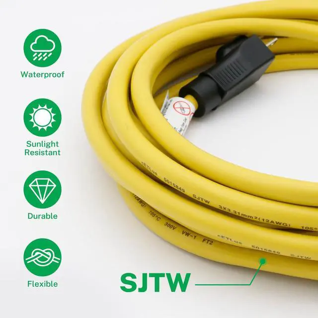 Bright yellow cord makes identification easy, even outdoors or in low-light settings, helping to prevent tripping and misplacement