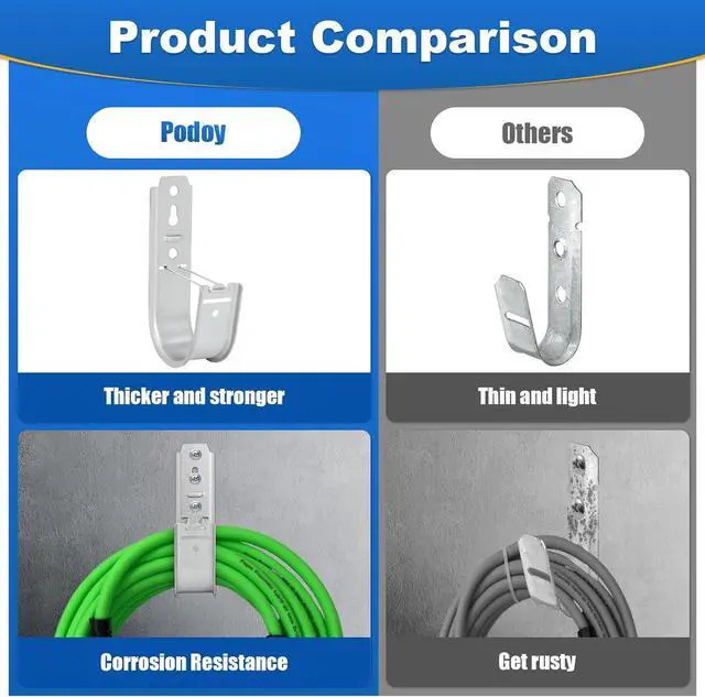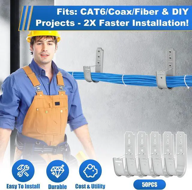 Efficient Cable Management - Package includes 50 cable hook with clips, sufficient for 200 feet of cable runs, which are widely used in data room, factory, storage shed, garage, office, or other residential, commercial and industrial occasions, transforming cluttered spaces into streamlined professional setups with industrial-grade reliability and organization