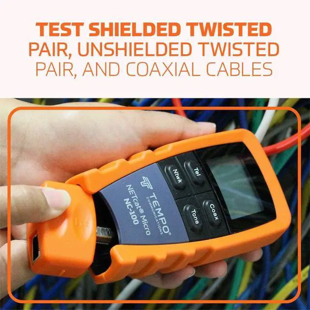 Complete set of connector types standard (telephone, LAN and coax) Nested remote allows end-to-end testing of all wiring types Simple testing of LAN wiring and phone lines Detection of common wiring and connector errors One year limited warranty