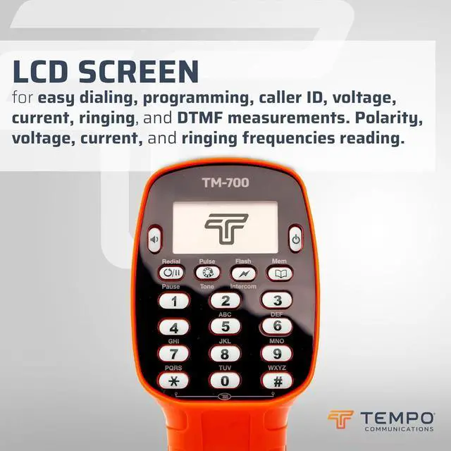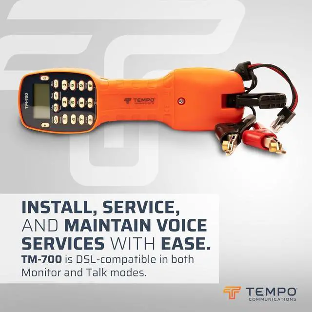 PRO-GRADE - Tempo Communications designs high-quality phone test equipment for Communication service professionals. Get voice, data, and video jobs done right with the TM-700 butt set phone .