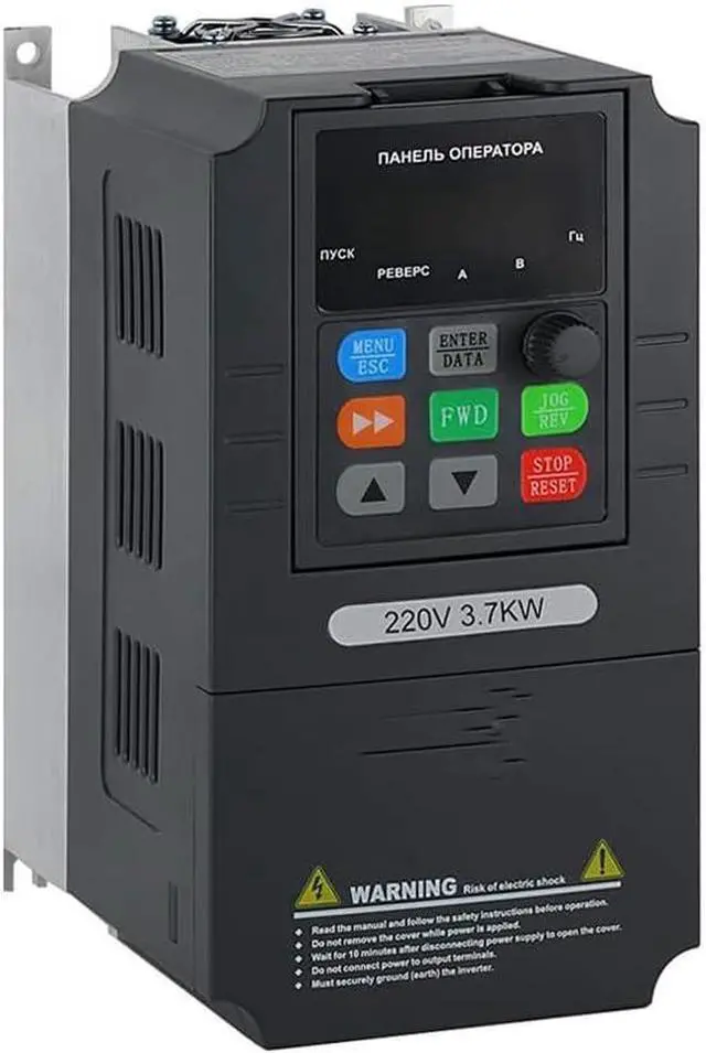 ATO 5HP single to 3 phase VFD, 3.7 kW, single phase 220V to three phase variable frequency drive, 17 amps. Using it as a phase converter to convert 1-phase 220v (230v, 240v) home power supply to drive 3-phase motors