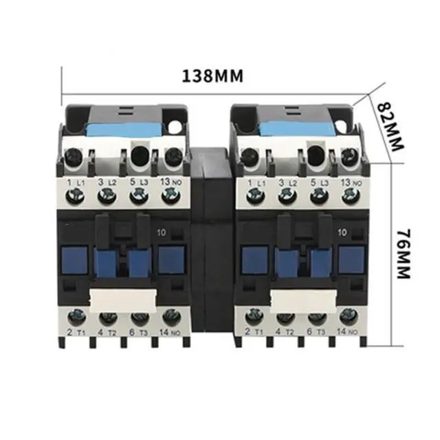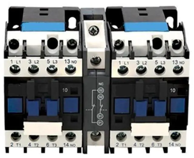 • 12 amp 3 pole/ 4 pole mechanical interlocking AC contactor is an electrically controlled switch constructed with a mechanical interlock and two revering contactor, which is used for switching an electrical power circuit, coil rated voltage from 24V AC to 380V AC