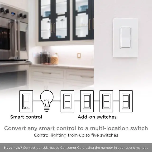 Multi-switch operation The switch is not a stand-alone device. It must be used with a Wi-Fi, Z-Wave or Zigbee smart control for home automation. A smart switch or dimmer and as many as four add-on switches can be linked for operation from up to 5 locations.