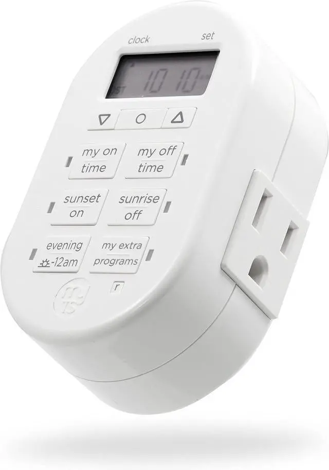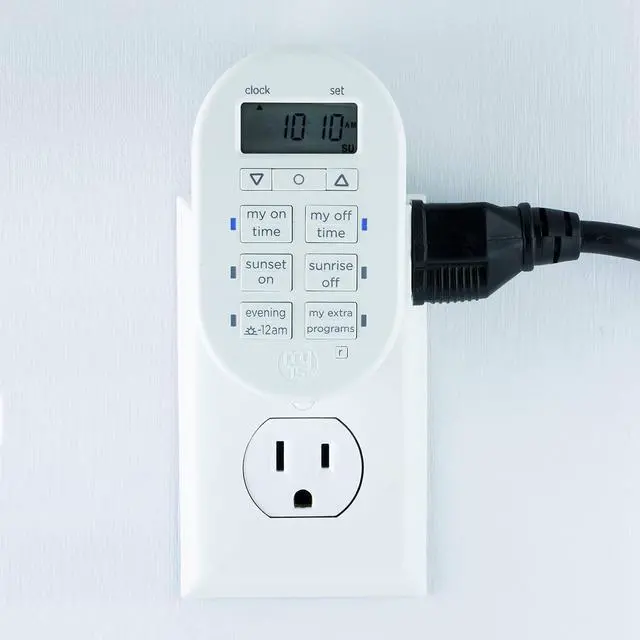 Simple to setup indoor timer with programmable my onoff buttons and customizable weekly settings. Choose from preset options or set up to 8 custom onoff times.