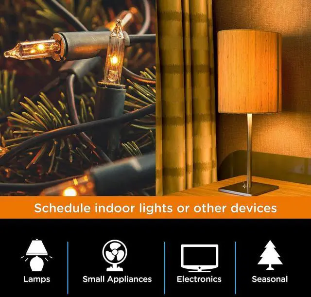 Features one heavy duty grounded outlet. Ideal for use with indoor lighting, seasonal lighting, electronics, lamps, fans, and other small appliances, electronics. Compatible with LED, CFL, Incandescent and Halogen bulbs, also works with dimmable LED and CFL bulbs