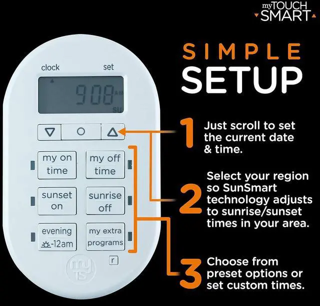 Built-in SunSmart technology allows you to set onoff times that automatically adjust to sunrisesunset times in your region.