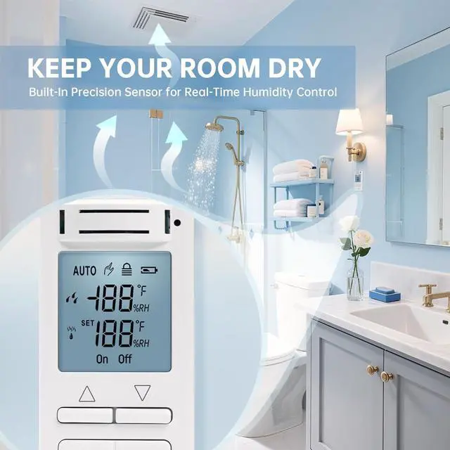 • Dehumidification Function: Ortis Wall-Mounted Humidity Controller features built-in moisture sensors with advanced microprocessor and digital sensing technology to accurately monitor indoor humidity levels. It automatically activates the fan when humidity increases to keep bathrooms dry. Also supports humidifier control for added comfort during dry weather