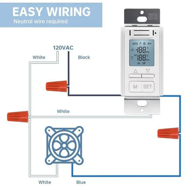 Wide Application and Easy Setup: Fits standard wall boxes, supports 110V/220V (neutral wire required). Great for bathrooms, basements, laundry rooms and more
