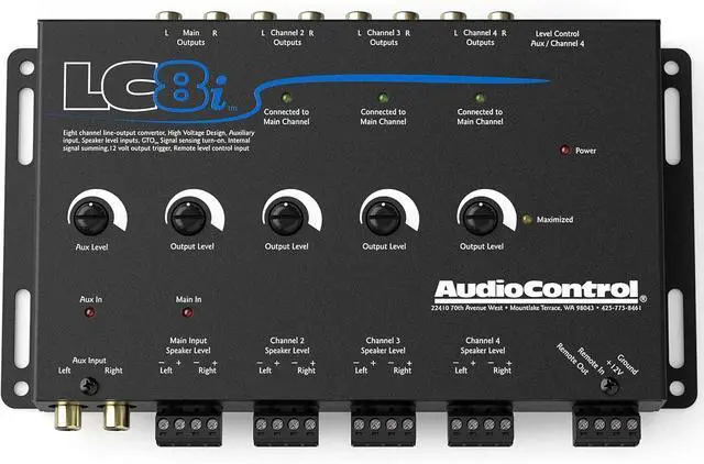 Output Level: +/- 12 dB adjustment for each RCA output, allowing you to match the level of speaker level inputs. Separate output level control for auxiliary input.