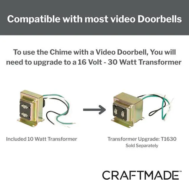 INSTALLATION: Horizontal hanging Position; Must Use at Least 18 Gauge Wire Everywhere (from Button to Chime, Transformer to Chime, and Chime to Chime if Wiring More than One), and Must Use a 16 Volt / 15 Watt Transformer