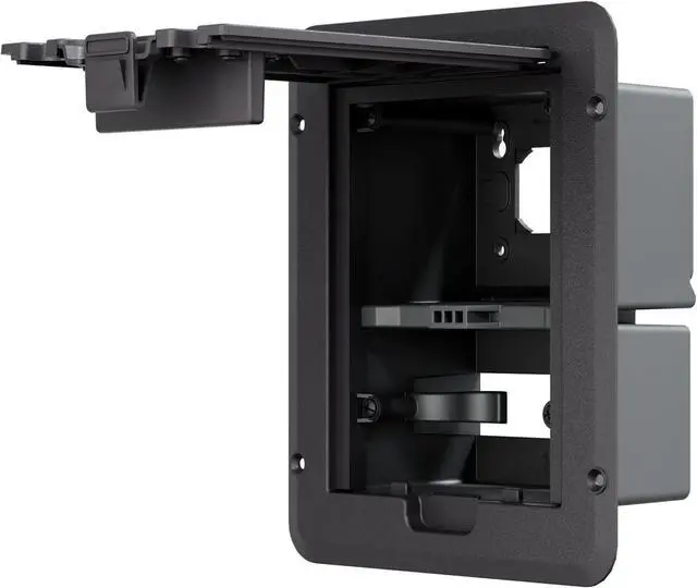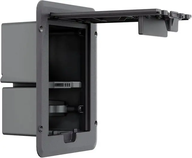 Cord hooks hold two power cords in place, including most 16 gauge grounded extension cords