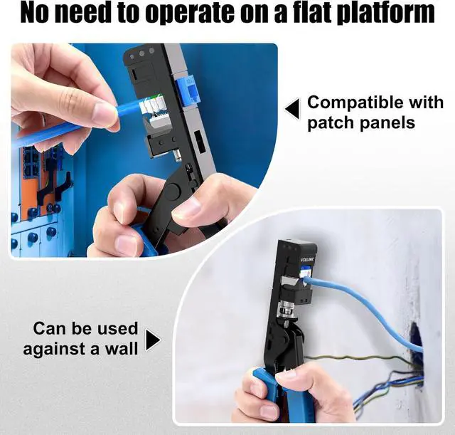 NO PLATFORM REQUIRED - You can easily terminate keystone jacks directly on patch panels and wall plates with one hand using VCELINK's termination tool, without having to punch down wires on a flat surface alone.