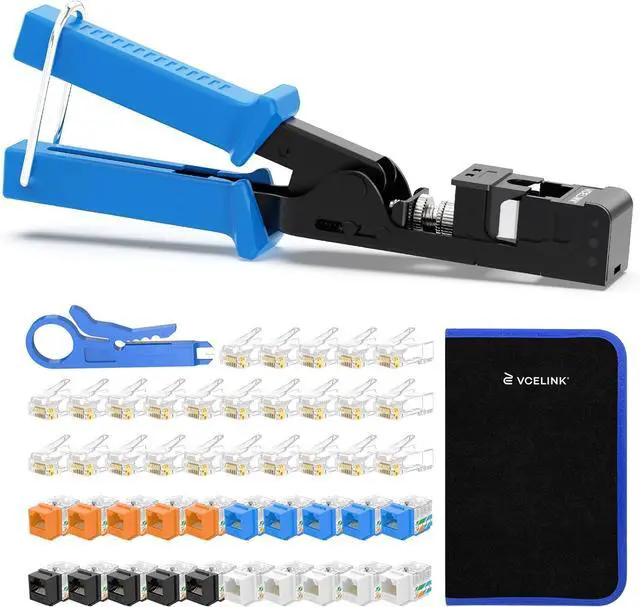 PACKAGE & SERVICE - Package includes 1 × rj45 jack termination tool, 20 × C265 CAT6 keystone jacks, 25 × RJ45 CAT6 pass-through connectors, and 1 × blue mini wire stripper. We prioritize the customer experience and offer an 18-month warranty for all our products. If you encounter any confusion, please feel free to contact us and we will solve it for you within 24 hours.