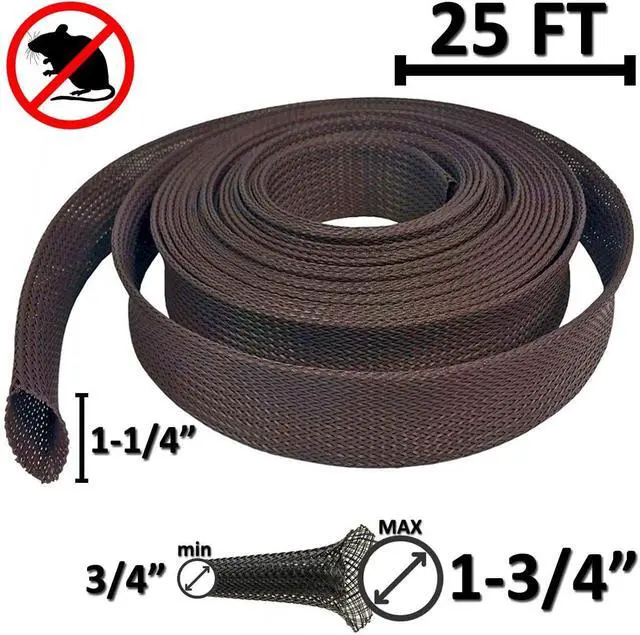 This flexible wire and hose braided conduit makes a very repulsive meal for any critter | RoHS Compliant | Halogen Free | Material: Polyester