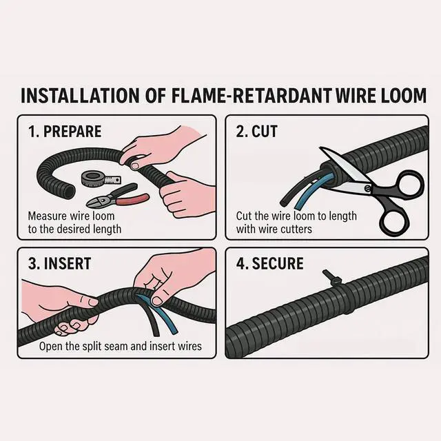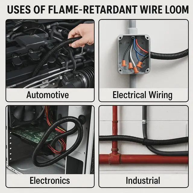 The benefits of Flame Retardant Wire Loom are that it reduces fire risk in high-heat environments, meets safety standards for industries like automotive, aerospace, and construction, and maintains structural integrity longer during accidental fire exposure compared to standard plastics.