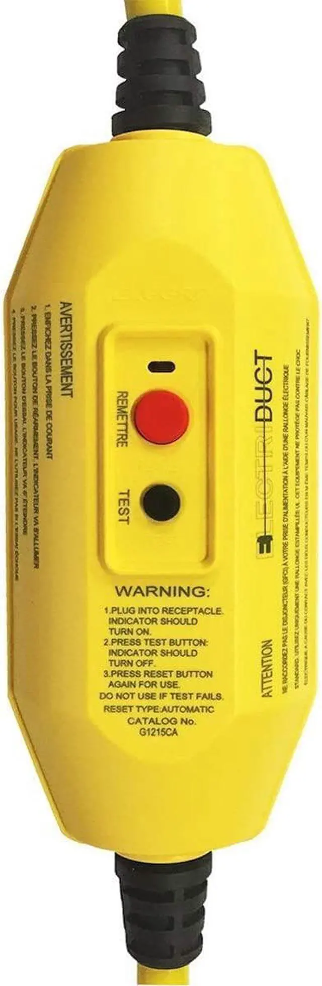 SPECIFICATIONS: Class A GFCI | 15 Amp | Automatic reset turns on upon being plugged in or after a power outage | Unit must be reset manually after a Ground Fault