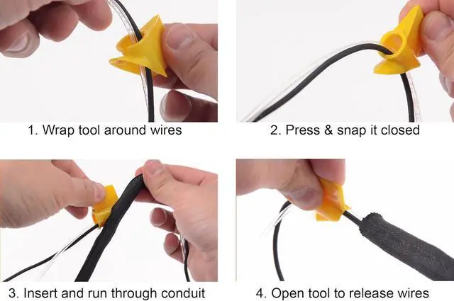 It's like having another hand, the Alternate Yellow Wire Loom tool will hold your cables together while you run them through the wire loom making this process quick and easy