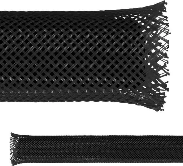 Organize and protect your cables with our PET (Polyethylene Terephthalate) expandable weave pattern sleeving. UL, ROHS, REACH, Halogen Free, Flame retardant (VW-1 flammability rating). This flexible wire mesh sleeving is designed for durability and functionality, while offering a sleek and professional appearance that complements any setup. Our sleeving is easy to use, ensuring a hassle-free installation process that our customers love and appreciate. The sturdy construction of this expandable sleeving with tight braid construction effectively tidies up your cables and provides a polished look to your workspace, along with resistance to abrasion and chemicals. In homes, offices, automotive, or industrial applications this sleeving gives you reliable and stylish cord and cable management. Perfect for everything from Industrial Strength to "Do-It Yourself" needs.
