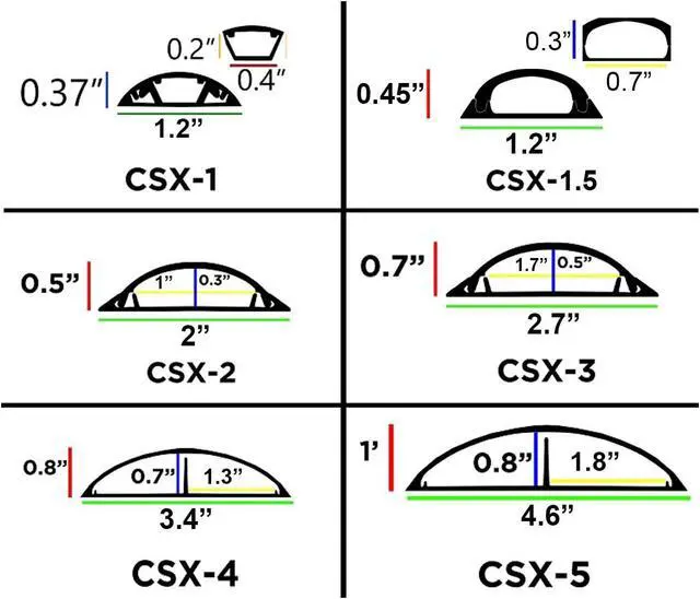 Channel Size: 0.4"W x 0.24"H (measured at its farthest points)