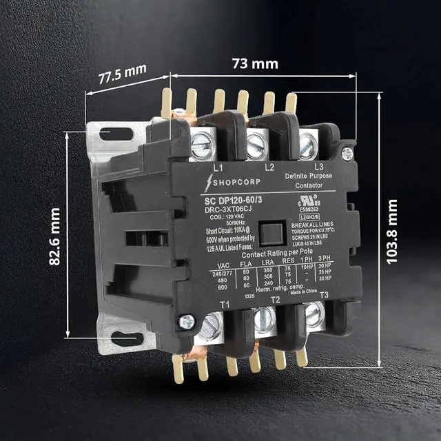• Contactor 120V Coil Safe & Efficient Coil Design: Equipped with a 110/120V coil and Class F insulation for temperature resistance and electrical efficiency. Compatible with 50/60Hz systems, ensuring smooth performance and safe usage in demanding installations.