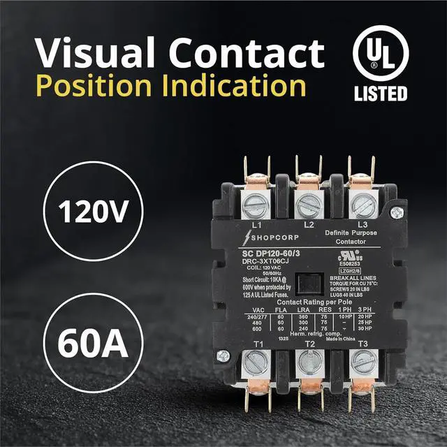• HVAC Contactor Durable, Quiet, and Versatile: Designed for HVAC, refrigeration, and heat pump systems, this 3-pole contactor delivers silent operation and dust resistance. Rated for 60 amps at 120V, ideal for residential, commercial, or industrial environments.