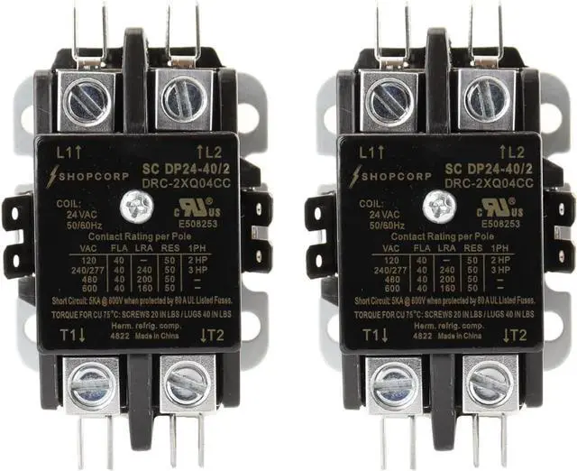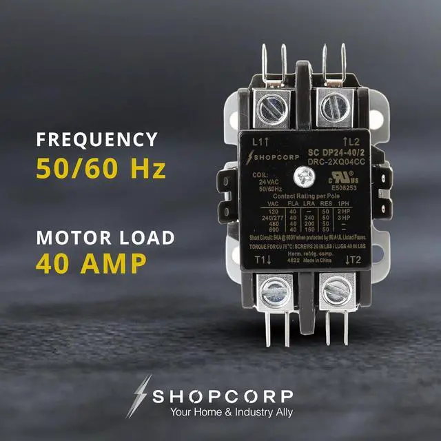 Coil Voltage and Amp Load Supports inductive/motor loads of 40A and resistive/incandescent loads of 50A. Compatible with 15A, 18A, 20A, 30A, 32A, 40A, and 50A loads. Ideal for air conditioner contactor and 2 pole contactor needs.