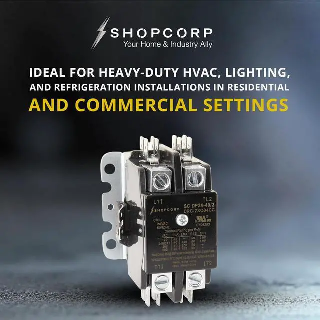 HVAC Parts Applications Ideal for heating, refrigeration, and lighting tasks. AC-1 rated for resistance furnaces, incandescent lamps, or electric heaters; AC-3 rated for air conditioners, compressors, or fans. Perfect for HVAC contactor and a/c contactor applications.