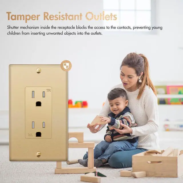 Tamper Resistant Child proof shutter mechanism inside the receptacle prevents young children from inserting unwanted objects into the outlets.