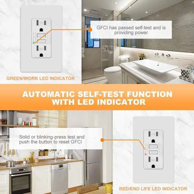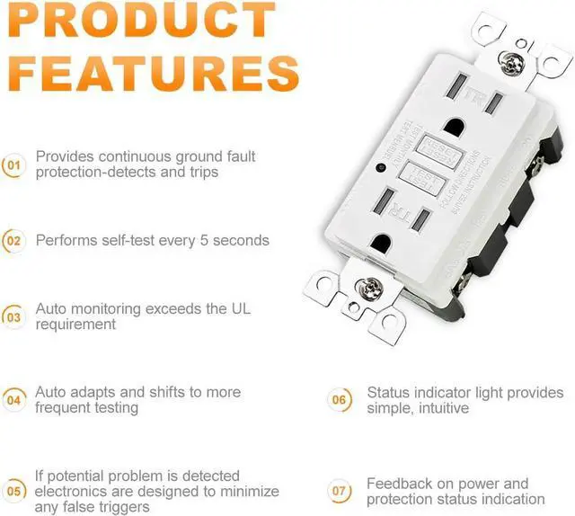 Automatically test the GFCI every time the reset button is pushed in. The GFCI will not reset if the GFCI circuit is not functioning properly.