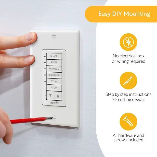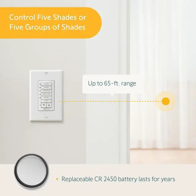 CONVIENENENT CONTROL - Place it conveniently next to an existing light switch and you have the perfect solution to control your shades, blinds, and curtains with ease when entering and exiting any room.