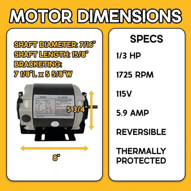 Powerful Performance: 1/3 HP belt drive motor operating at 1725 RPM delivers reliable and efficient operation for various applications