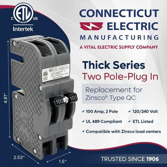 Model QCAL100: Specially designed as a Zinsco replacement circuit breaker, ensuring seamless compatibility and performance.