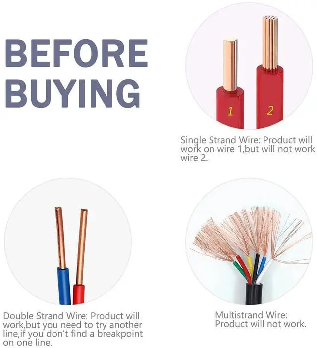 • Before purchasing: please check which wire type you want to find. Only for single or two-core wires in parallel connection, not for multi-stranded wires